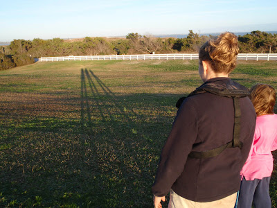 Maret, Olaf (Our Dutch friends), Kaitlin and Casey at Carrot Island,with the Shackleford Horses (wild horses) in the background.