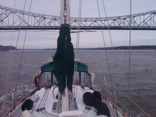 Going through Hell Gate ended up being pretty sane. We got stuck behind a tug going slower than us (we had about a 4kt current in our favor, so add our 6.3kts of boat speed and we were doing about 10.3kts over ground - not our fastest, but still fun for a 26 year old sailboat!) so we had to throttle back some. With the currents and the turns through the gate you really don't want to pass anyone. I'm glad we did this since as the tug approached the exit from the gate he slewed sideways some from the riptides. Exiting the gate we had to stay behind the tug for quite some time as there was a lot of BIG oncoming traffic. That's OK though - we're a sailboat, even if we're motoring. Relax, take it easy, and enjoy being out on the water.