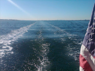 The next morning it was just Kristen and I and we headed for Branford. This was a fairly easy 38nm jaunt - exit Stamford Harbor, turn east, go 15nm, turn slightly north, and then go another 20nm, then turn toward the Branford River. It was another great day out, and the weather cooperated well. Our only issue was dodging lobster pots - many of which were black (scum from being out all season?) and difficult to see. We ran over one, but it didn't catch. We certainly weren't interested in diving on our prop in 45-50 degree water!