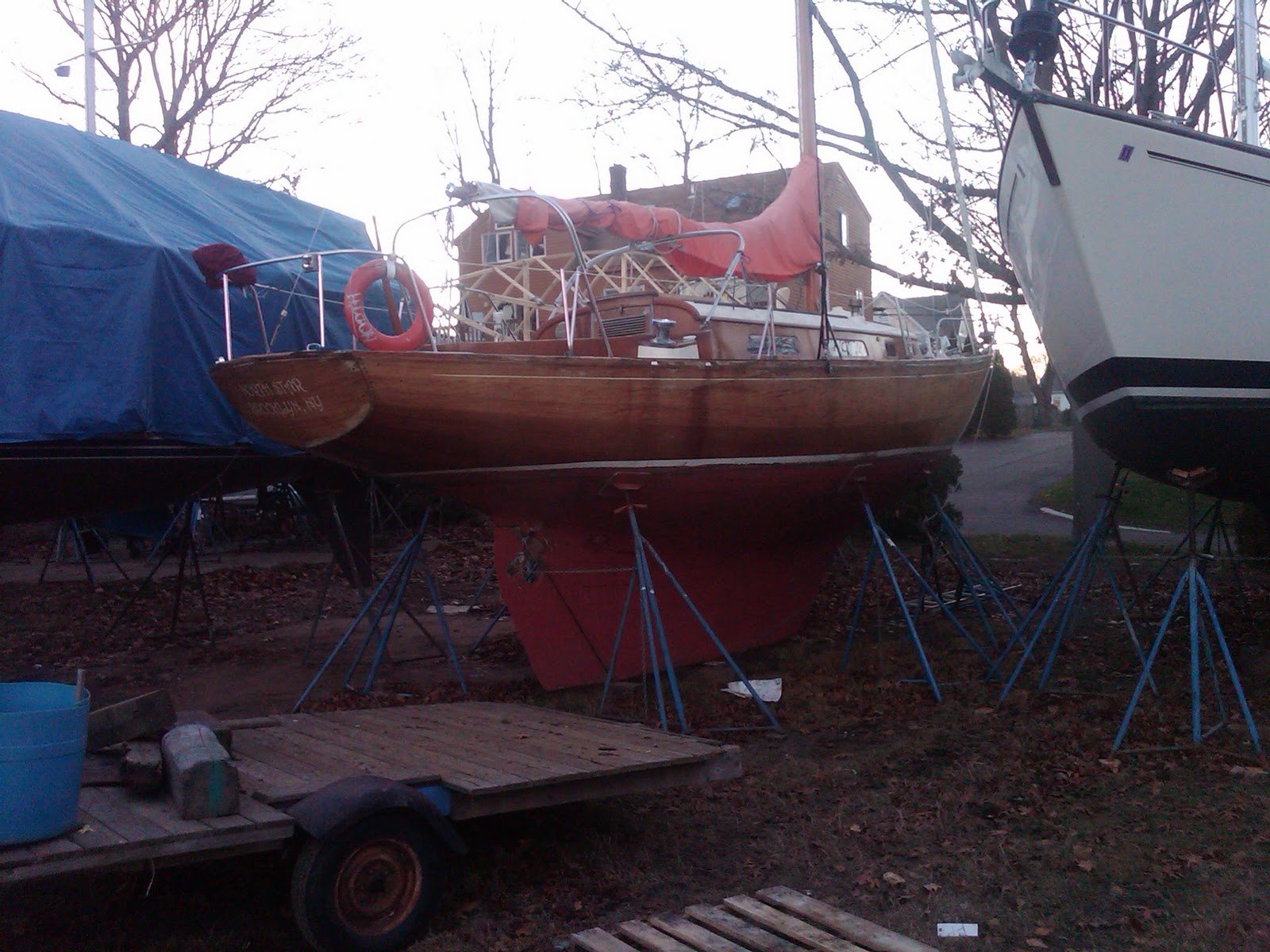 Pelican has now been hauled and her mast removed. She should also be shrinkwrapped by now. We have a lot of work to do on her over the Winter. The boatyard will be fixing an issue with the rudder cage that is known to Passport boats (it's pretty corroded through) and we'll be doing some work on the mast (new wiring, cleaning up some corrosion, etc.). We might also take the opportunity to do a little work on the teak decks.